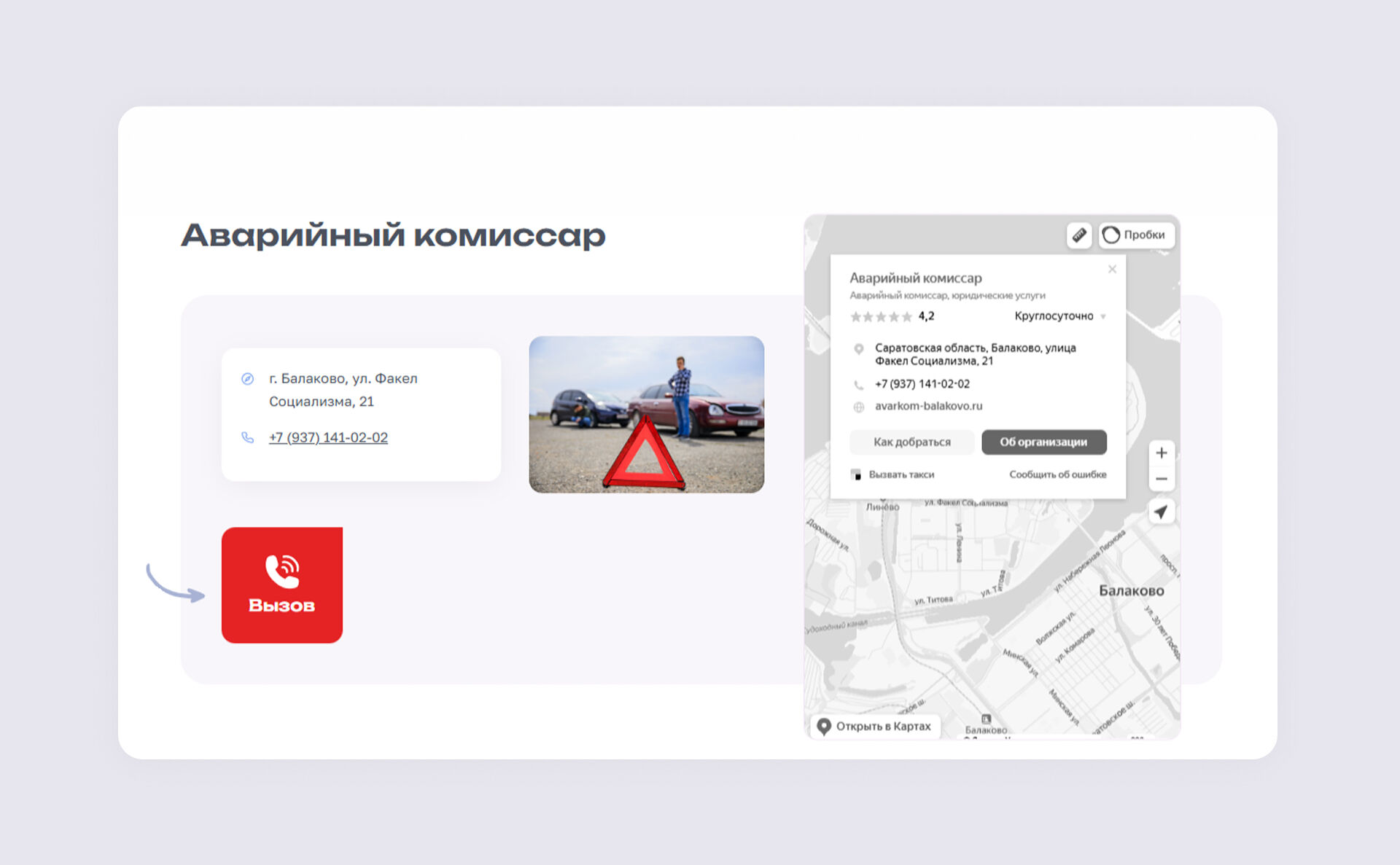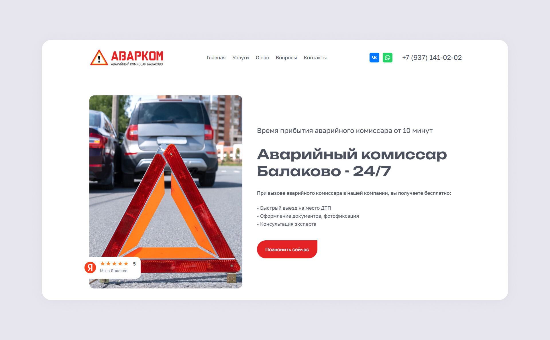 Создать сайт для «Аварком» аварийного комиссара города Балаково.