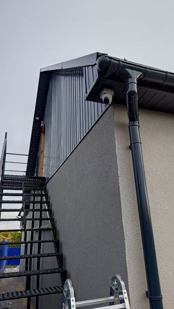 Проложили 2 кабеля к камерам. Использовали кабель DIVISAT FTP 4PR 24AWG Cu CAT 5e (0,52) OUTDOOR — информационный кабель уличного исполнения, восемь медных проводов, попарно скрученных между собой, с различным шагом скрутки. С экраном из фольги, который защитит от внешних электромагнитных помех. Изоляция жил РЕ (полиэтилен), внешняя оболочка кабеля из РЕ черного цвета.